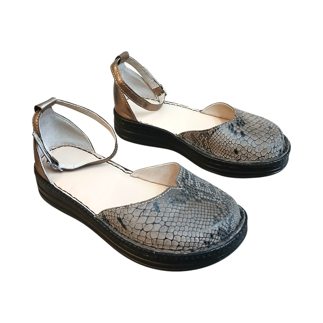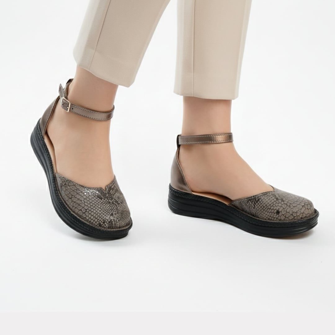 Acești pantofi cu imprimeu modern de șarpe sunt lucrați cu atenție din piele naturală moale, care se adaptează delicat formei piciorului tău. Principalul avantaj este talpa extrem de ușoară și flexibilă, care îți permite să te miști natural, fără să simți oboseala, chiar și după o zi întreagă de purtare.