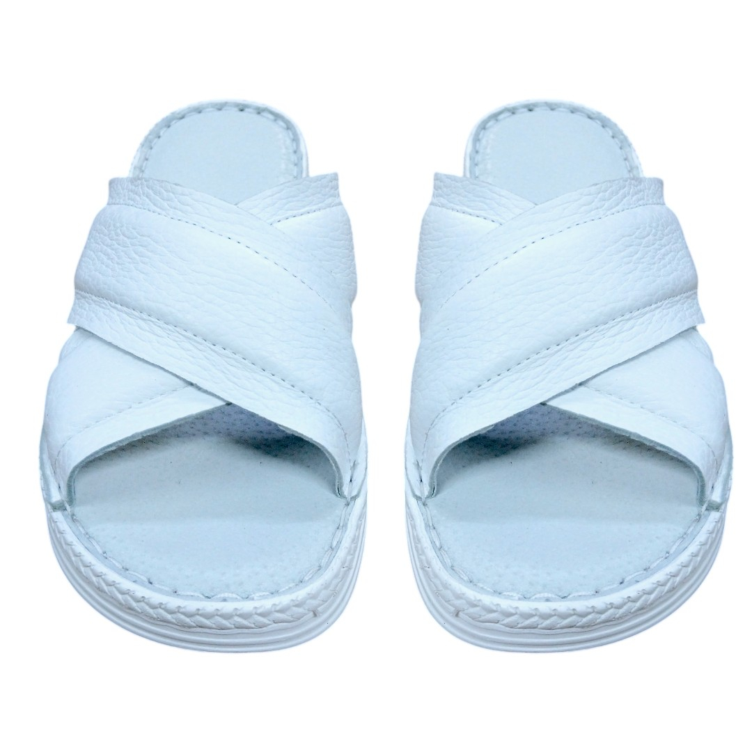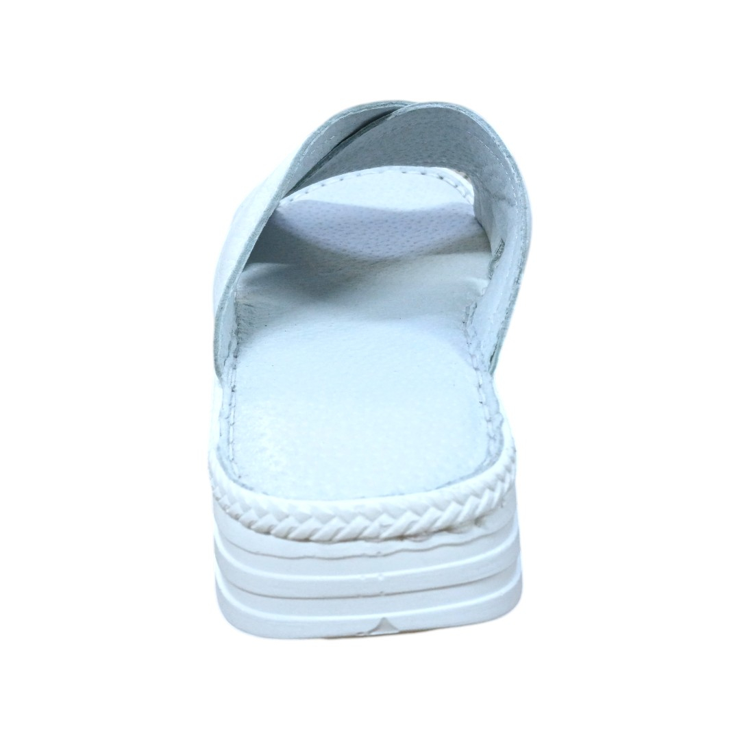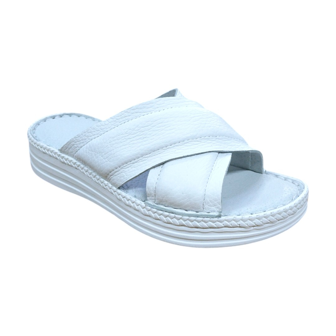 Papuci Damă din Piele Naturală Soft-touch alb bizonat