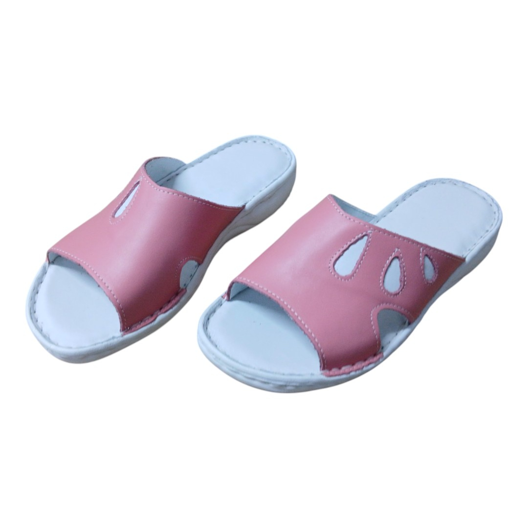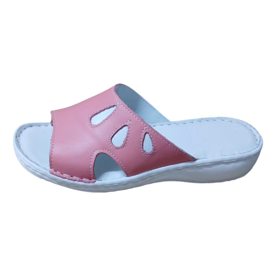 Descoperiți combinația perfectă de delicatețe și confort cu acești papuci de damă, realizați cu măiestrie din piele naturală și cusuti manual. Nuanța subtilă de roz pal și designul elegant cu perforații îi transformă într-o alegere ideală pentru a adăuga o notă de feminitate și rafinament ținutelor dumneavoastră de vară, fie că sunteți acasă, la plajă sau la o plimbare relaxantă.