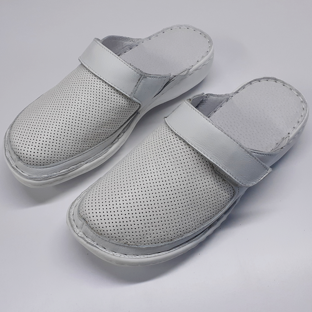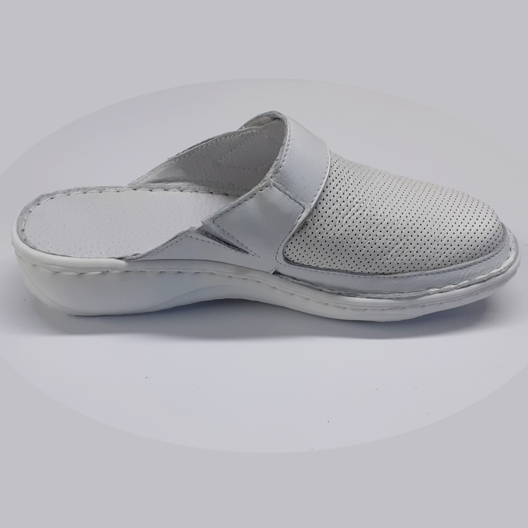 Saboti femei din piele naturala cu bareta, care se regleaza in functie de latimea piciorului.Sunt  recomandati pentru persoanele care lucreaza mult timp stand in picioare.