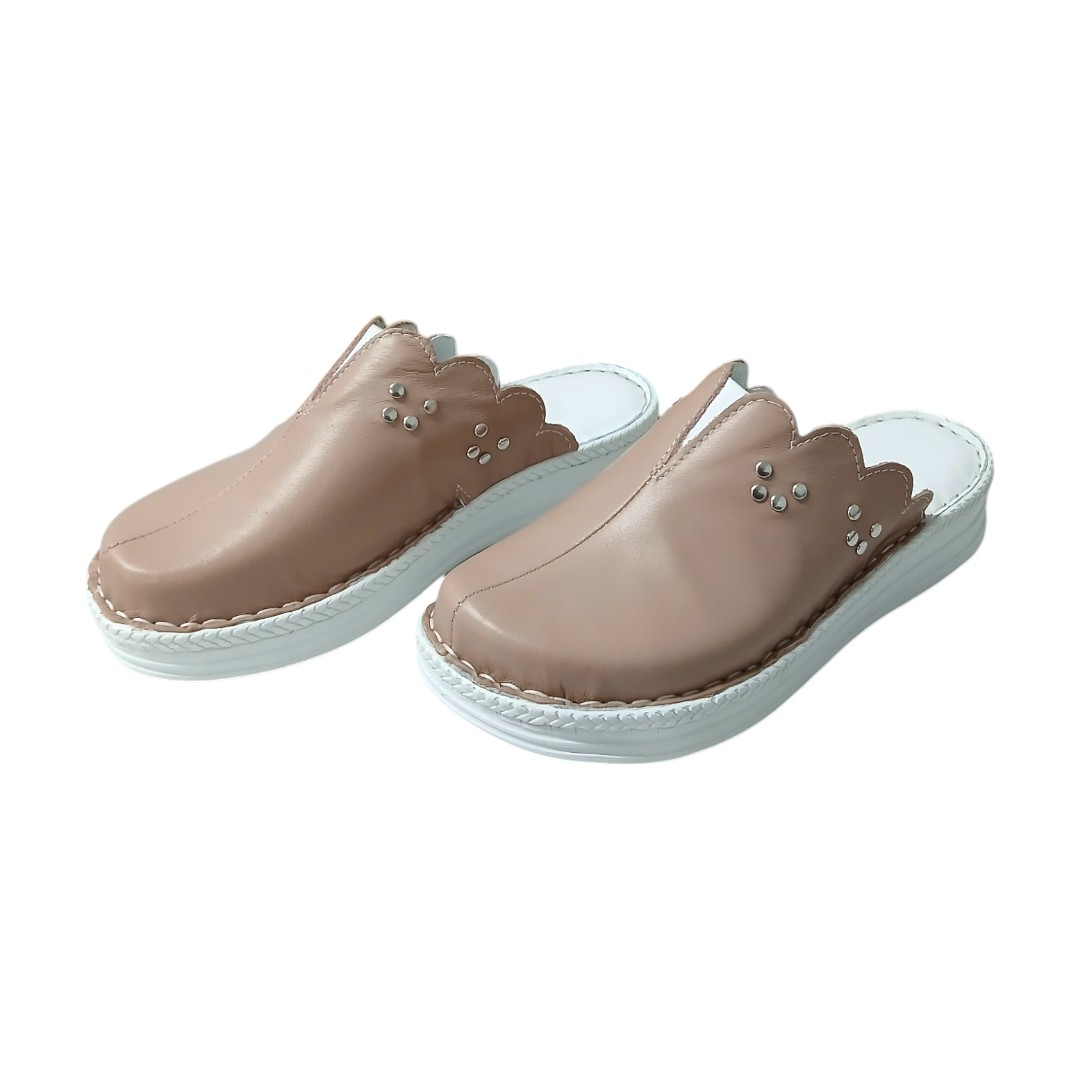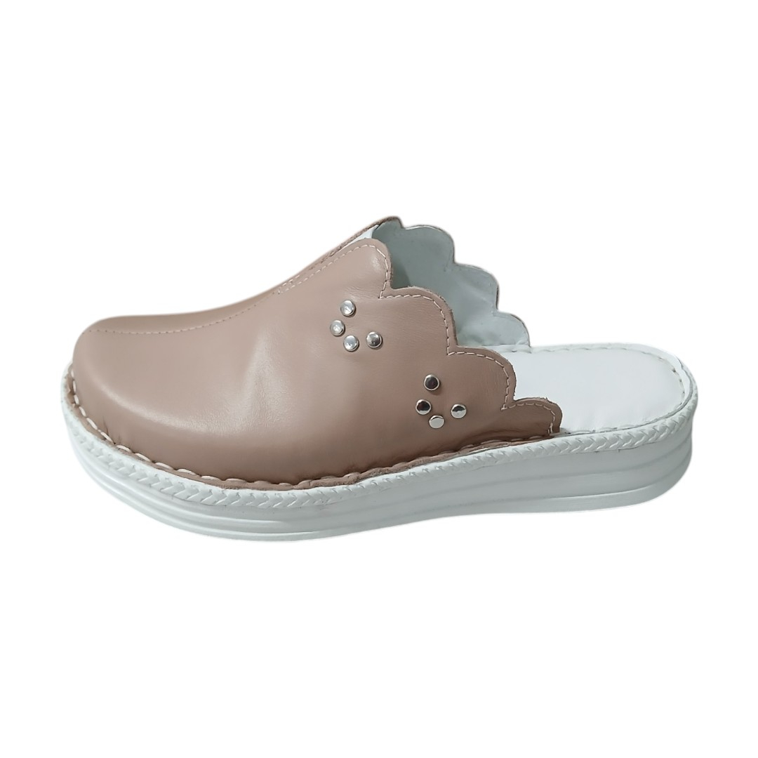 Saboti femei piele naturala 4062 pudra