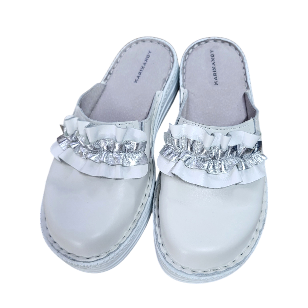 Saboti femei piele naturala 4500 alb