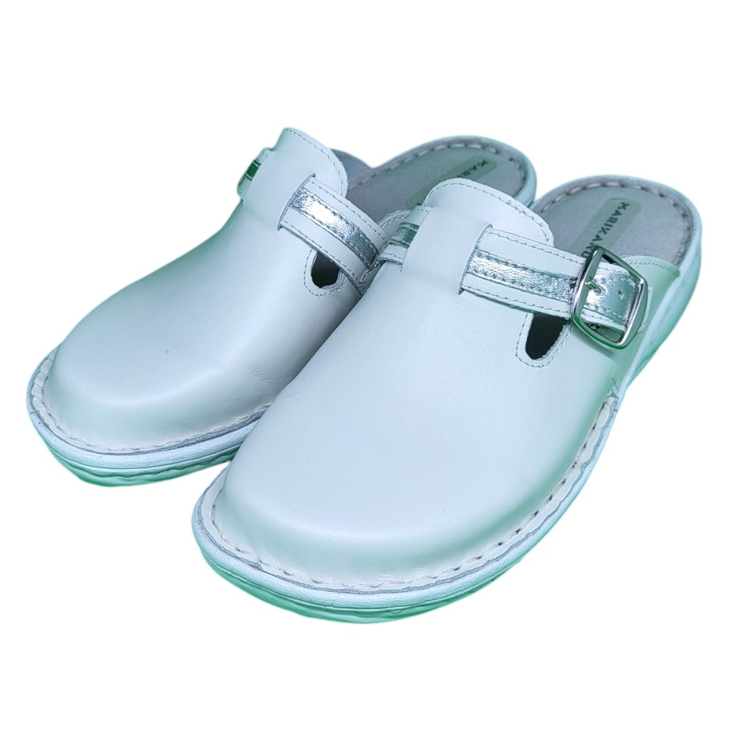 Saboti femei din piele naturala cu bareta, care se regleaza in functie de latimea piciorului.Sunt  recomandati pentru persoanele care lucreaza mult timp stand in picioare.