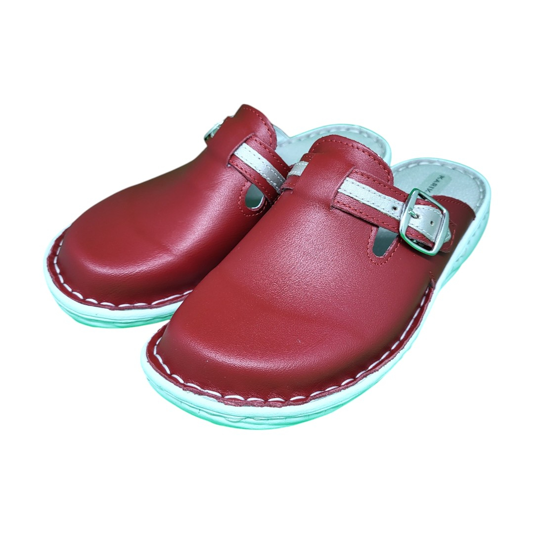 Saboti femei din piele naturala cu bareta, care se regleaza in functie de latimea piciorului.Sunt recomandati pentru persoanele care lucreaza mult timp stand in picioare.