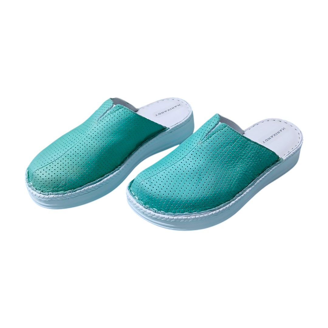 Saboti femei din piele naturala perforata, potrivite si pentru persoanele cu picior mai lat.